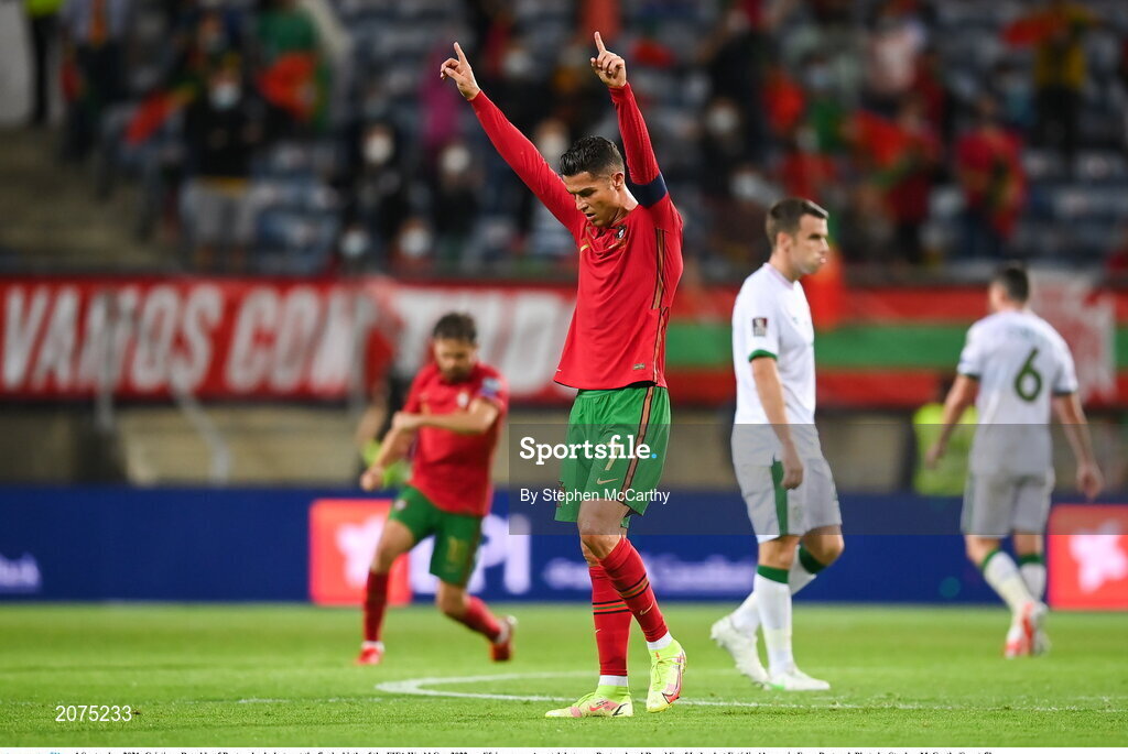 1 September 2021; Cristiano Ronaldo of Portugal ccelebrates following the FIFA World Cup 2022 qualifying group A match between Portugal and Republic of Ireland at Estádio Algarve in Faro, Portugal. Photo by Stephen McCarthy/Sportsfile