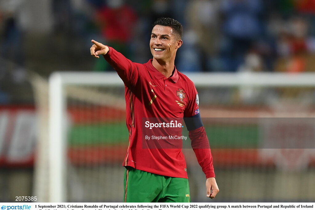 1 September 2021; Cristiano Ronaldo of Portugal celebrates following the FIFA World Cup 2022 qualifying group A match between Portugal and Republic of Ireland at Estádio Algarve in Faro, Portugal. Photo by Stephen McCarthy/Sportsfile