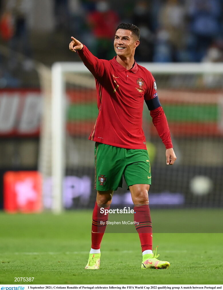 1 September 2021; Cristiano Ronaldo of Portugal celebrates following the FIFA World Cup 2022 qualifying group A match between Portugal and Republic of Ireland at Estádio Algarve in Faro, Portugal. Photo by Stephen McCarthy/Sportsfile