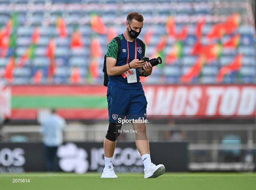 1 September 2021; FAI videographer Matthew Turnbull before the FIFA World Cup 2022 qualifying group A match between Portugal and Republic of Ireland at Estádio Algarve in Faro, Portugal. Photo by Seb Daly/Sportsfile