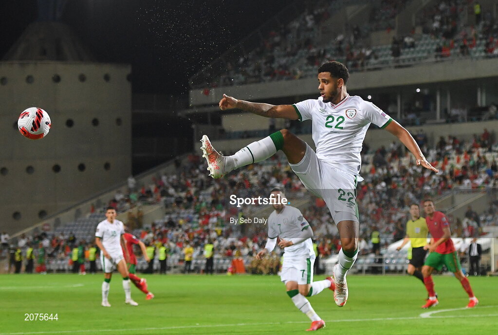 1 September 2021; Andrew Omobamidele of Republic of Ireland during the FIFA World Cup 2022 qualifying group A match between Portugal and Republic of Ireland at Estádio Algarve in Faro, Portugal. Photo by Seb Daly/Sportsfile