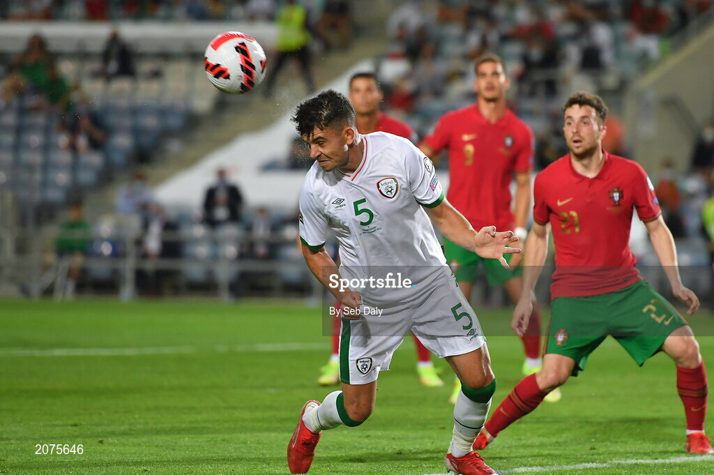 1 September 2021; John Egan of Republic of Ireland during the FIFA World Cup 2022 qualifying group A match between Portugal and Republic of Ireland at Estádio Algarve in Faro, Portugal. Photo by Seb Daly/Sportsfile