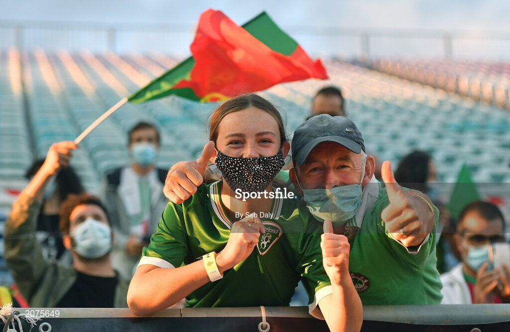 1 September 2021; Republic of Ireland supporters during the FIFA World Cup 2022 qualifying group A match between Portugal and Republic of Ireland at Estádio Algarve in Faro, Portugal. Photo by Seb Daly/Sportsfile