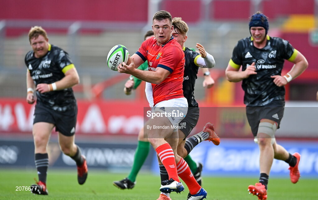 4 September 2021; Matt Gallagher of Munster Red VX in action against Jake Flannery of Munster Grey XV during a challenge match between Munster XV Red and Munster XV Grey at Thomond Park in Limerick. Photo by Brendan Moran/Sportsfile