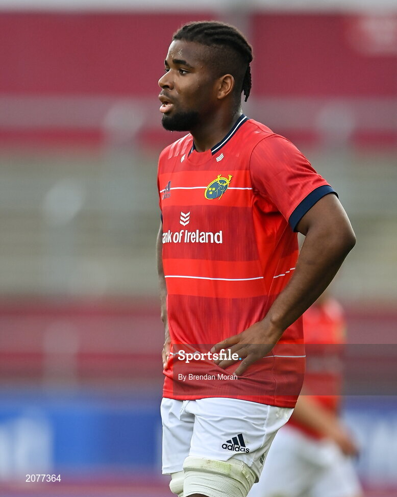 4 September 2021; Daniel Okeke of Munster Red VX during a challenge match between Munster XV Red and Munster XV Grey at Thomond Park in Limerick. Photo by Brendan Moran/Sportsfile
