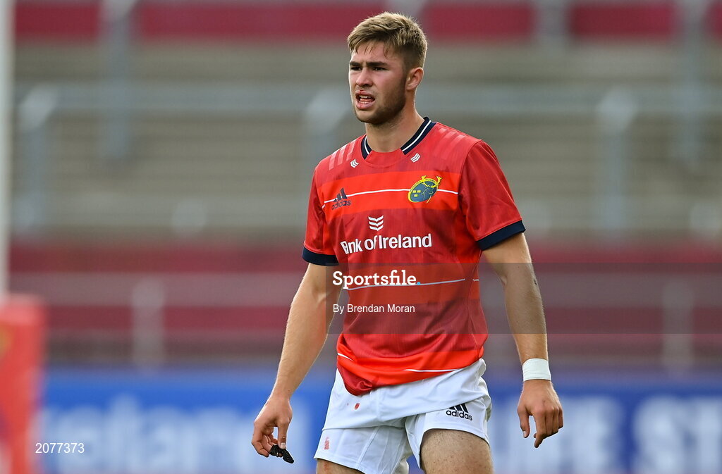 4 September 2021; Jack Crowley of Munster Red VX during a challenge match between Munster XV Red and Munster XV Grey at Thomond Park in Limerick. Photo by Brendan Moran/Sportsfile