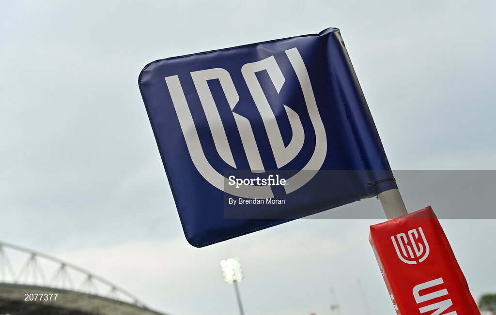 4 September 2021; A general view of United Rugby Championship branding on a flag at Thomond Park in Limerick. Photo by Brendan Moran/Sportsfile