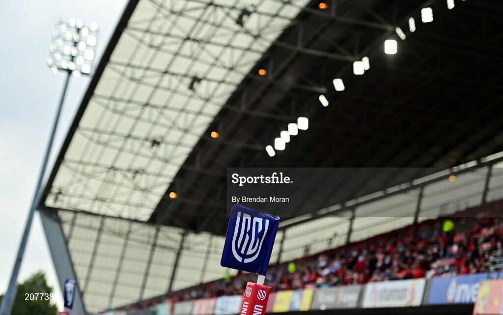 4 September 2021; A general view of United Rugby Championship branding on a flag at Thomond Park in Limerick. Photo by Brendan Moran/Sportsfile