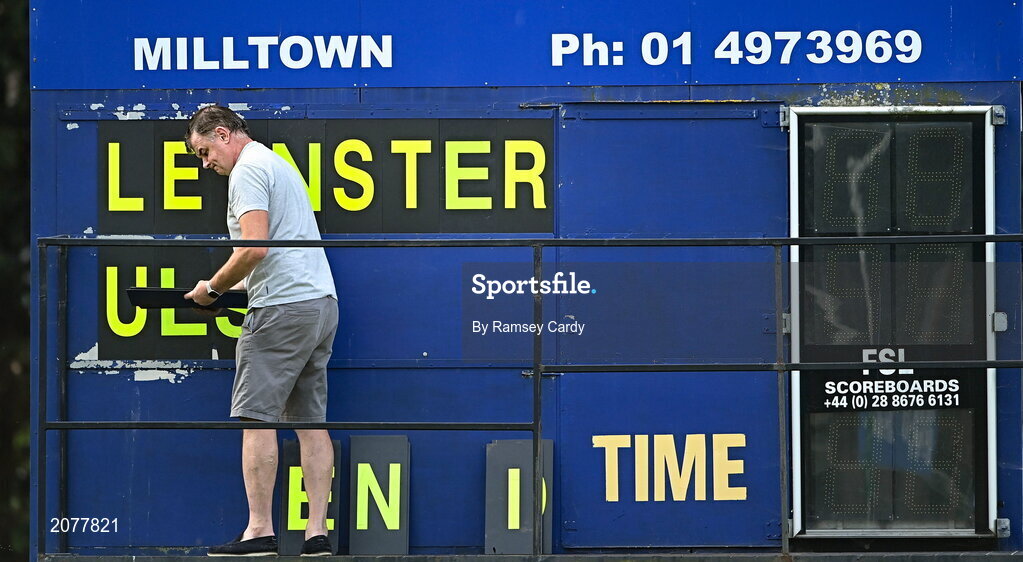 5 September 2021; The scoreboard is prepared before the IRFU U18 Women's Interprovincial Championship Round 2 match between Leinster and Ulster at Templeville Road in Dublin. Photo by Ramsey Cardy/Sportsfile