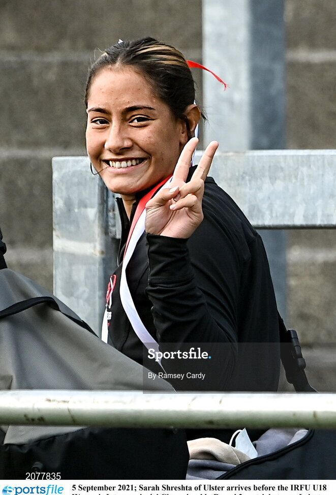 5 September 2021; Sarah Shreshta of Ulster arrives before the IRFU U18 Women's Interprovincial Championship Round 2 match between Leinster and Ulster at Templeville Road in Dublin. Photo by Ramsey Cardy/Sportsfile