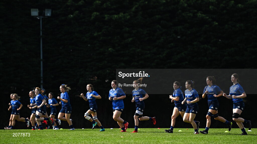 5 September 2021; The Leinster team warm-up before the IRFU U18 Women's Interprovincial Championship Round 2 match between Leinster and Ulster at Templeville Road in Dublin. Photo by Ramsey Cardy/Sportsfile