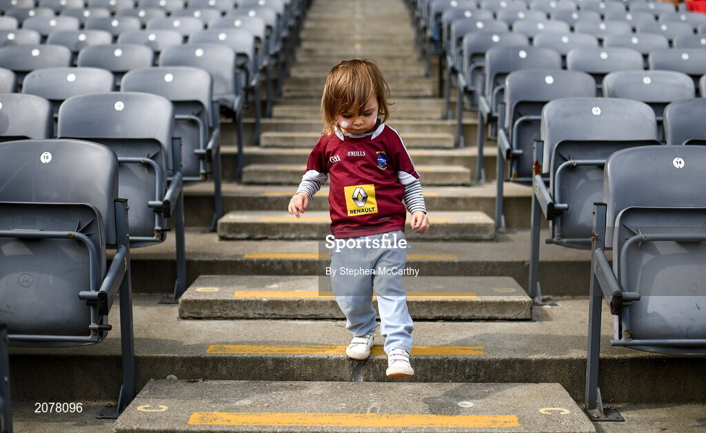 5 September 2021; Westmeath supporter Maisie Heduan, age 2, from Mullingar, during the TG4 All-Ireland Ladies Intermediate Football Championship Final match between Westmeath and Wexford at Croke Park in Dublin. Photo by Stephen McCarthy/Sportsfile