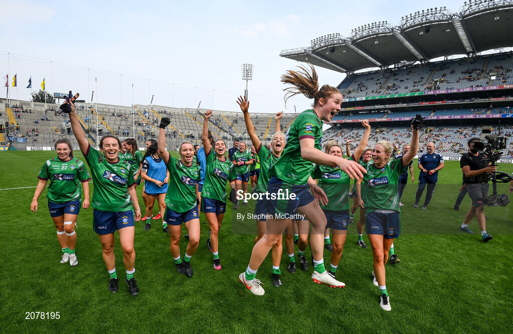 5 September 2021; Westmeath players celebrate following the TG4 All-Ireland Ladies Intermediate Football Championship Final match between Westmeath and Wexford at Croke Park in Dublin. Photo by Stephen McCarthy/Sportsfile