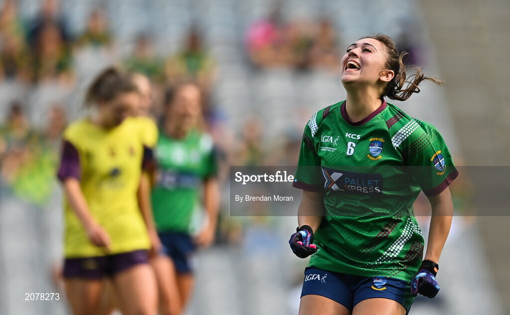 5 September 2021; Lucy Power of Westmeath celebrates at the final whistle of the TG4 All-Ireland Ladies Intermediate Football Championship Final match between Westmeath and Wexford at Croke Park in Dublin. Photo by Brendan Moran/Sportsfile