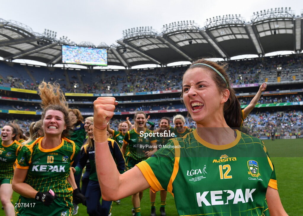 5 September 2021; Niamh O'Sullivan of Meath celebrates after her side's victory in the TG4 All-Ireland Ladies Senior Football Championship Final match between Dublin and Meath at Croke Park in Dublin. Photo by Piaras Ó Mídheach/Sportsfile