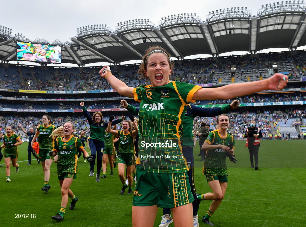 5 September 2021; Niamh O'Sullivan of Meath celebrates after her side's victory in the TG4 All-Ireland Ladies Senior Football Championship Final match between Dublin and Meath at Croke Park in Dublin. Photo by Piaras Ó Mídheach/Sportsfile