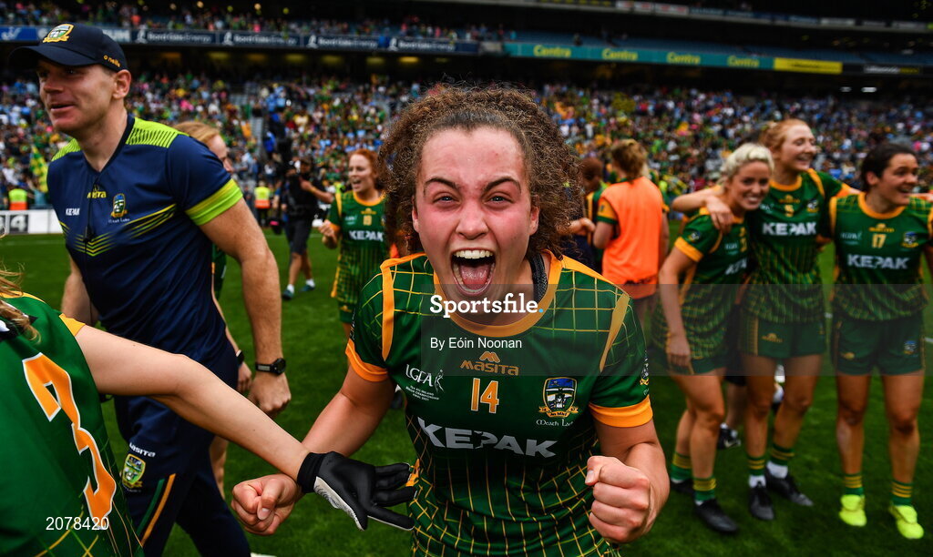 5 September 2021; Emma Duggan of Meath celebrates after the TG4 All-Ireland Ladies Senior Football Championship Final match between Dublin and Meath at Croke Park in Dublin. Photo by Eóin Noonan/Sportsfile