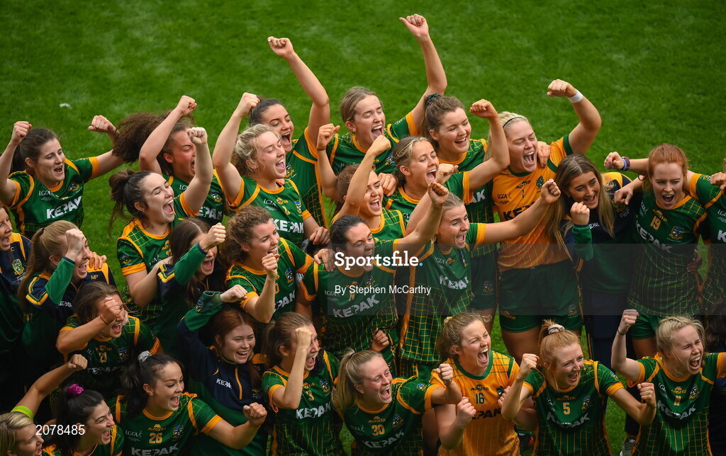 5 September 2021; Meath players celebrate following the TG4 All-Ireland Ladies Senior Football Championship Final match between Dublin and Meath at Croke Park in Dublin. Photo by Stephen McCarthy/Sportsfile