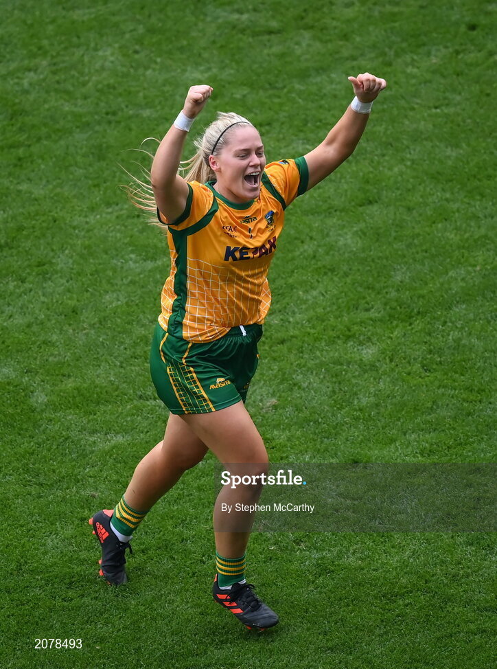 5 September 2021; Meath goalkeeper Monica McGuirk celebrates following the TG4 All-Ireland Ladies Senior Football Championship Final match between Dublin and Meath at Croke Park in Dublin. Photo by Stephen McCarthy/Sportsfile