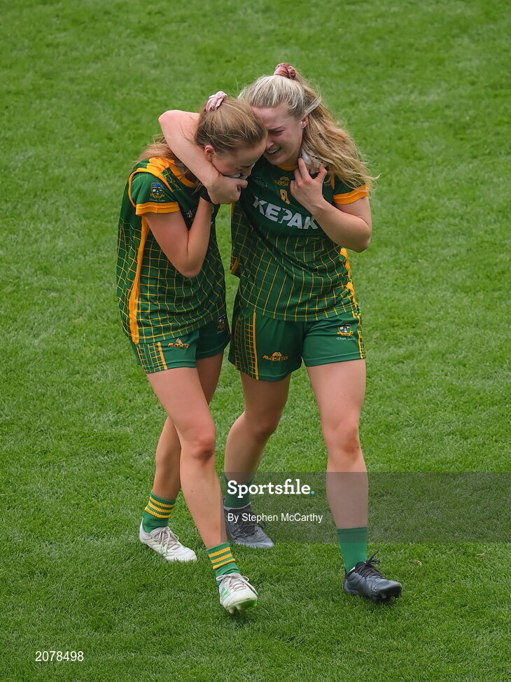 5 September 2021; Aoibhín Cleary, left, and Orlagh Lally of Meath following the TG4 All-Ireland Ladies Senior Football Championship Final match between Dublin and Meath at Croke Park in Dublin. Photo by Stephen McCarthy/Sportsfile