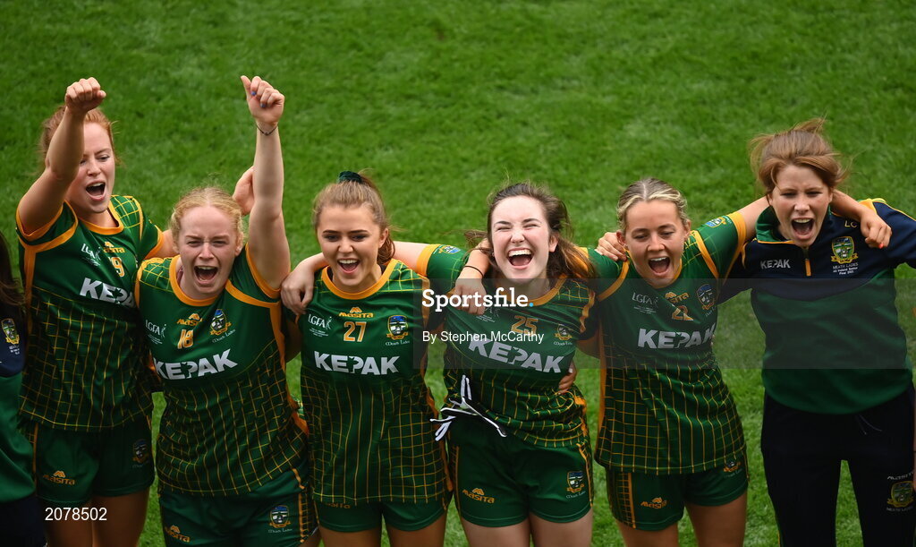 5 September 2021; Meath players celebrate following the TG4 All-Ireland Ladies Senior Football Championship Final match between Dublin and Meath at Croke Park in Dublin. Photo by Stephen McCarthy/Sportsfile