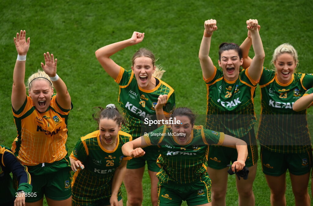 5 September 2021; Meath players celebrate following the TG4 All-Ireland Ladies Senior Football Championship Final match between Dublin and Meath at Croke Park in Dublin. Photo by Stephen McCarthy/Sportsfile