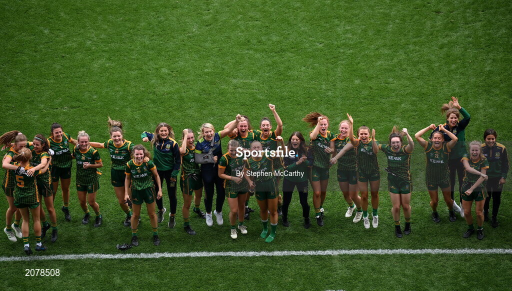5 September 2021; Meath players celebrate following the TG4 All-Ireland Ladies Senior Football Championship Final match between Dublin and Meath at Croke Park in Dublin. Photo by Stephen McCarthy/Sportsfile
