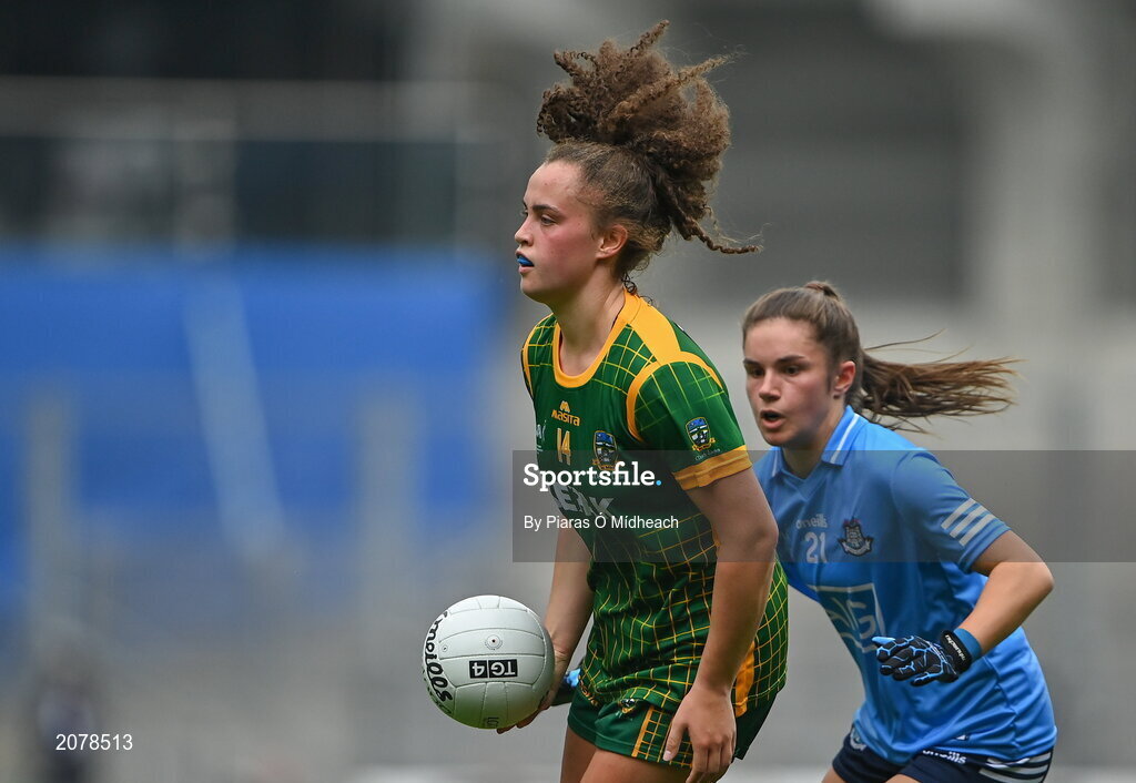 5 September 2021; Emma Duggan of Meath in action against Kate Sullivan of Dublin during the TG4 All-Ireland Ladies Senior Football Championship Final match between Dublin and Meath at Croke Park in Dublin. Photo by Piaras Ó Mídheach/Sportsfile