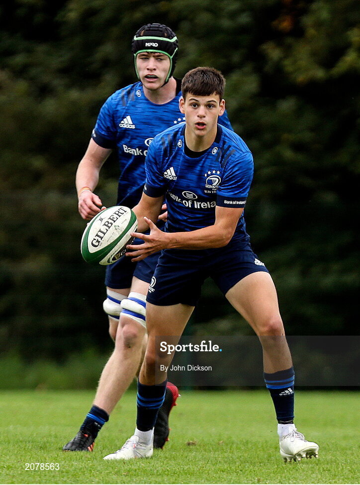 4 September 2021; Tom Larke of Leinster during the IRFU U18 Men's Clubs Interprovincial Championship Round 3 match between Ulster and Leinster at Newforge in Belfast. Photo by John Dickson/Sportsfile