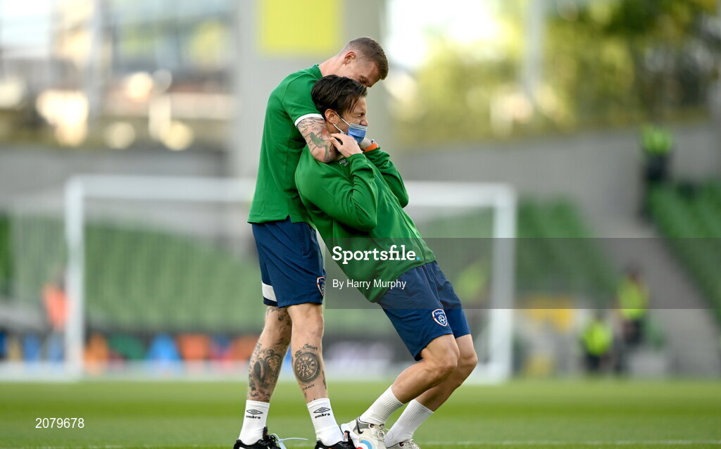 7 September 2021; James McClean, left, and Harry Arter of Republic of Ireland before the FIFA World Cup 2022 qualifying group A match between Republic of Ireland and Serbia at the Aviva Stadium in Dublin. Photo by Harry Murphy/Sportsfile
