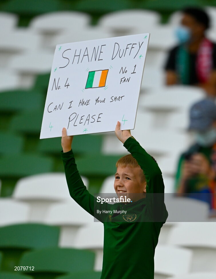 7 September 2021; Republic of Ireland supporter Aidan O'Neill, aged 10, from Donaghmede before the FIFA World Cup 2022 qualifying group A match between Republic of Ireland and Serbia at the Aviva Stadium in Dublin. Photo by Harry Murphy/Sportsfile