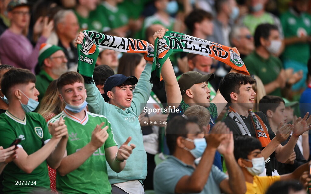 7 September 2021; Republic of Ireland supporters before the FIFA World Cup 2022 qualifying group A match between Republic of Ireland and Serbia at the Aviva Stadium in Dublin. Photo by Seb Daly/Sportsfile