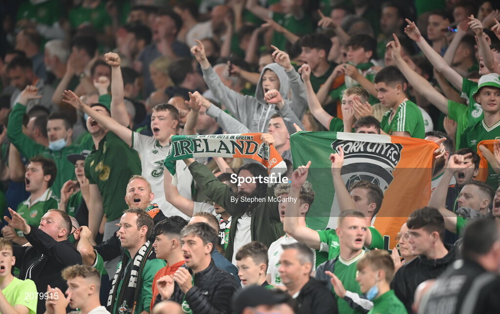 7 September 2021; Republic of Ireland supporters during the FIFA World Cup 2022 qualifying group A match against Serbia at the Aviva Stadium in Dublin. Photo by Stephen McCarthy/Sportsfile