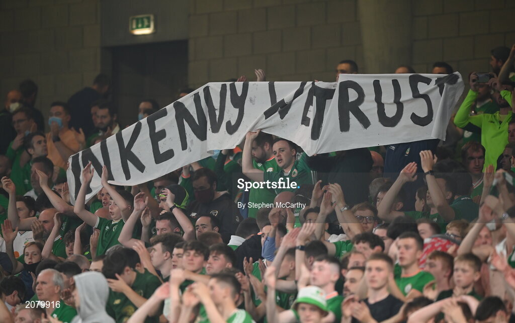 7 September 2021; Republic of Ireland supporters during the FIFA World Cup 2022 qualifying group A match against Serbia at the Aviva Stadium in Dublin. Photo by Stephen McCarthy/Sportsfile