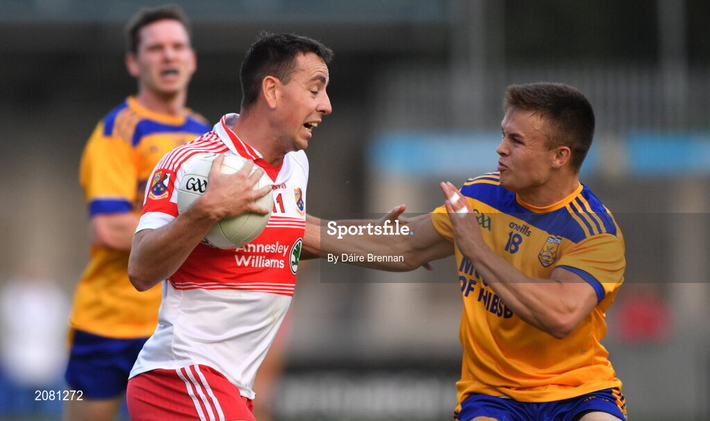 10 September 2021; Cormac Costello of Whitehall Colmcille in action against Eoin O'Dea of Na Fianna during the Go Ahead Dublin Senior Club Football Championship Group 1 match between Na Fianna and Whitehall Colmcille at Parnell Park in Dublin. Photo by Daire Brennan/Sportsfile