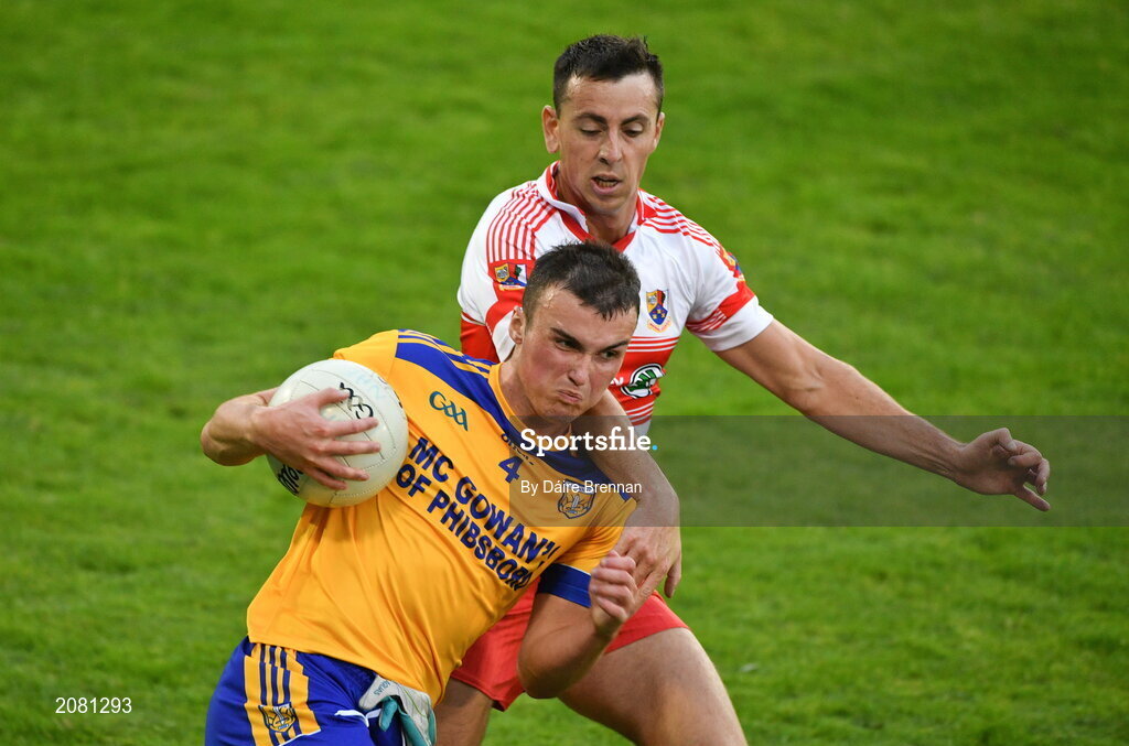 10 September 2021; Adam Rafter of Na Fianna in action against Cormac Costello of Whitehall Colmcille during the Go Ahead Dublin Senior Club Football Championship Group 1 match between Na Fianna and Whitehall Colmcille at Parnell Park in Dublin. Photo by Daire Brennan/Sportsfile