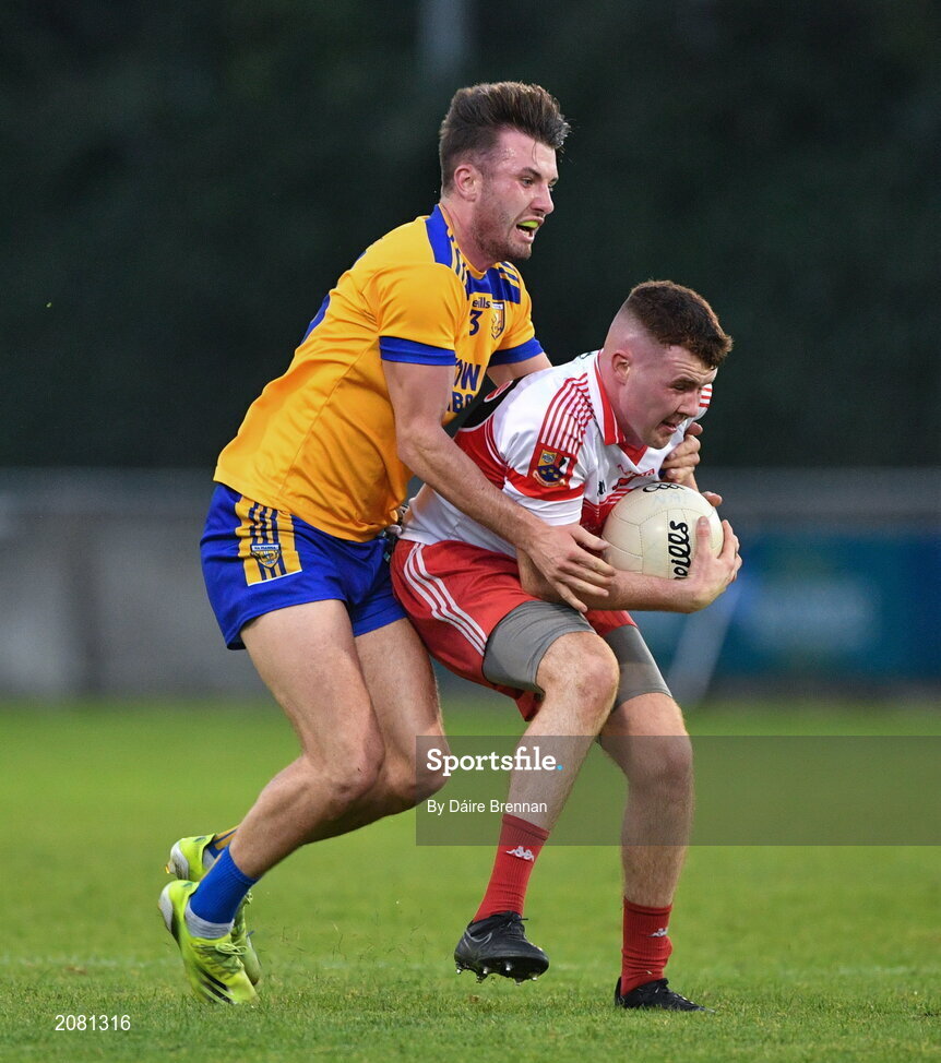 10 September 2021; Adam McDermott of Whitehall Colmcille in action against James Doran of Na Fianna during the Go Ahead Dublin Senior Club Football Championship Group 1 match between Na Fianna and Whitehall Colmcille at Parnell Park in Dublin. Photo by Daire Brennan/Sportsfile