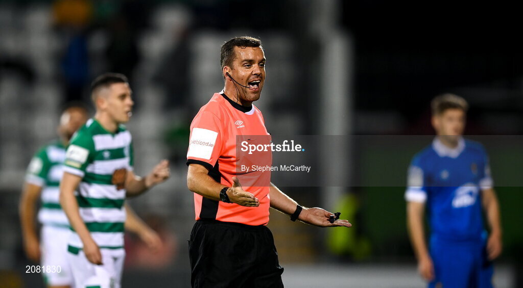10 September 2021; Referee Rob Harvey during the SSE Airtricity League Premier Division match between Shamrock Rovers and Waterford at Tallaght Stadium in Dublin. Photo by Stephen McCarthy/Sportsfile