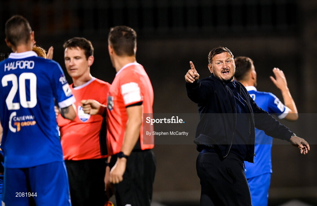 10 September 2021; Waterford manager Marc Bircham speaks to the match officials following the SSE Airtricity League Premier Division match between Shamrock Rovers and Waterford at Tallaght Stadium in Dublin. Photo by Stephen McCarthy/Sportsfile