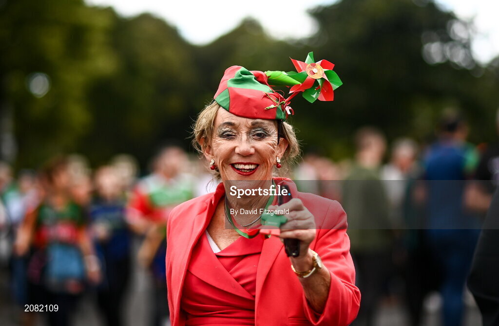 11 September 2021; Mayo supporter Mona McGarry from Ballyhaunis, Mayo prior to the GAA Football All-Ireland Senior Championship Final match between Mayo and Tyrone at Croke Park in Dublin. Photo by David Fitzgerald/Sportsfile