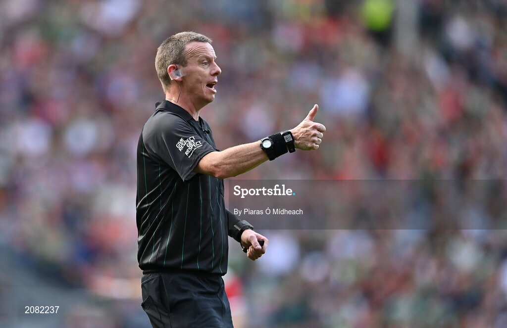 11 September 2021; Referee Joe McQuillan during the GAA Football All-Ireland Senior Championship Final match between Mayo and Tyrone at Croke Park in Dublin. Photo by Piaras Ó Mídheach/Sportsfile
