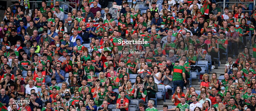 11 September 2021; Mayo supporters, in the Hogan stand, during the GAA Football All-Ireland Senior Championship Final match between Mayo and Tyrone at Croke Park in Dublin. Photo by Ray McManus/Sportsfile
