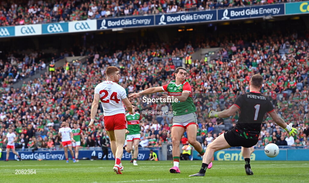 11 September 2021; Cathal McShane of Tyrone scores a goal during the GAA Football All-Ireland Senior Championship Final match between Mayo and Tyrone at Croke Park in Dublin. Photo by Ramsey Cardy/Sportsfile