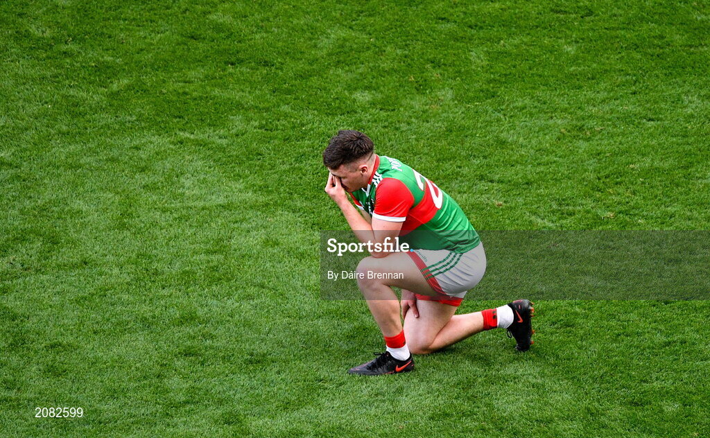 11 September 2021; A dejected James Carr of Mayo after the GAA Football All-Ireland Senior Championship Final match between Mayo and Tyrone at Croke Park in Dublin. Photo by Daire Brennan/Sportsfile