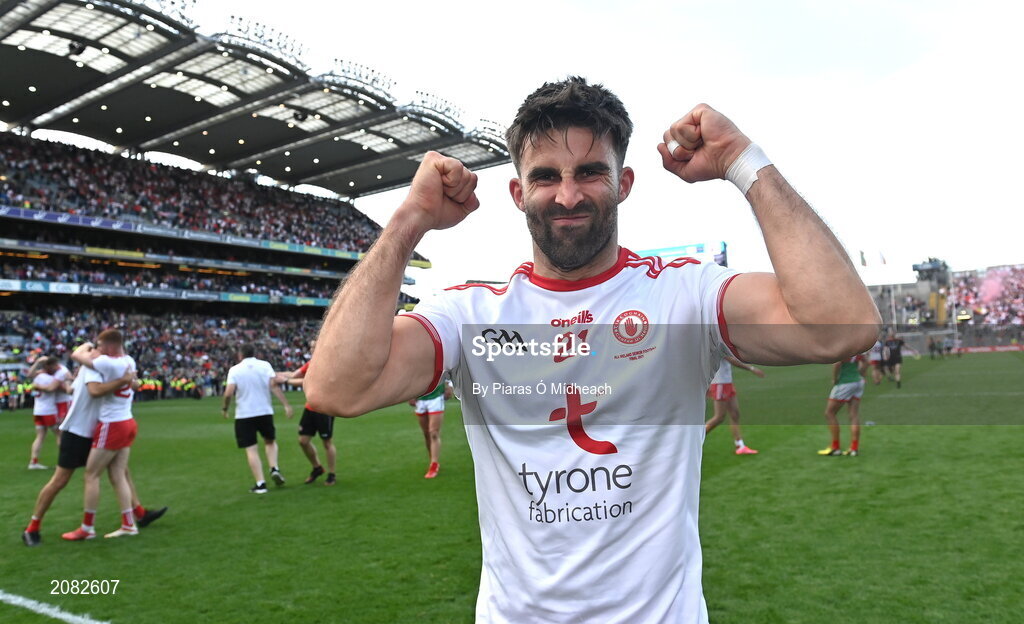 11 September 2021; Tiernan McCann of Tyrone celebrates after the GAA Football All-Ireland Senior Championship Final match between Mayo and Tyrone at Croke Park in Dublin. Photo by Piaras Ó Mídheach/Sportsfile