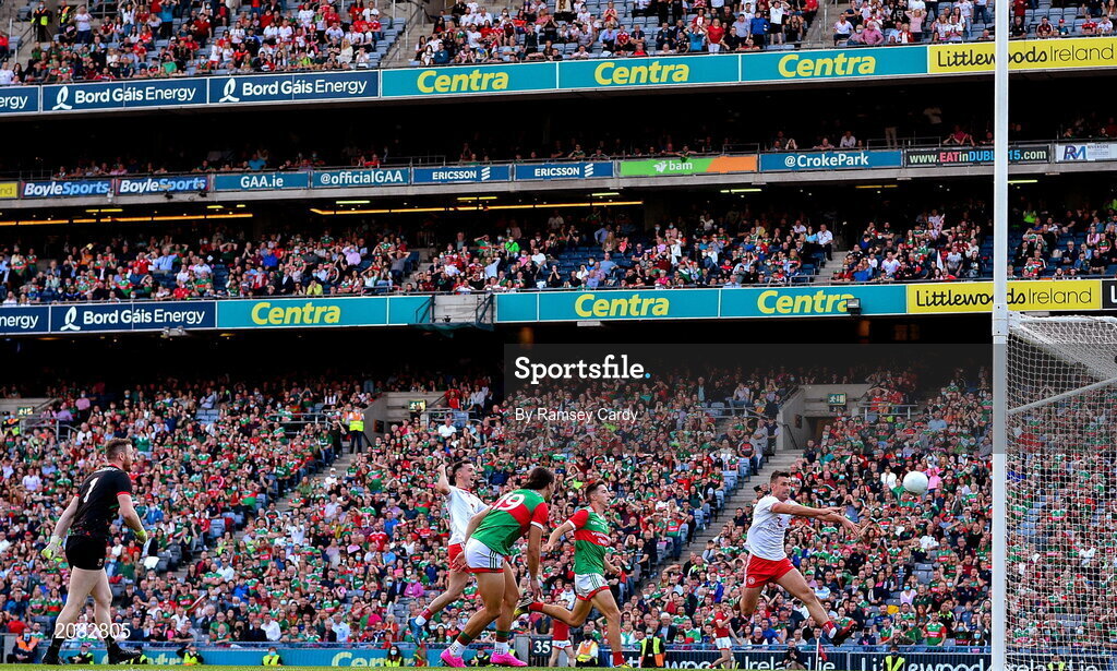 11 September 2021; Darren McCurry of Tyrone scores his side's second goal during the GAA Football All-Ireland Senior Championship Final match between Mayo and Tyrone at Croke Park in Dublin. Photo by Ramsey Cardy/Sportsfile