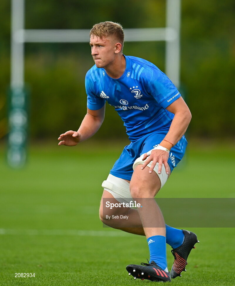 11 September 2021; Fionn McWey of Leinster during the Development Interprovincial match between Leinster XV and Ulster XV at the IRFU High Performance Centre, on the Sport Ireland Campus in Dublin. Photo by Seb Daly/Sportsfile