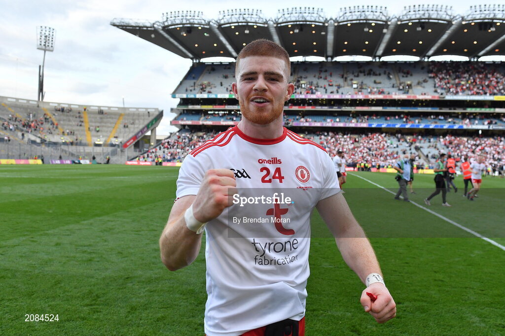 11 September 2021; Cathal McShane of Tyrone celebrates after the GAA Football All-Ireland Senior Championship Final match between Mayo and Tyrone at Croke Park in Dublin. Photo by Brendan Moran/Sportsfile