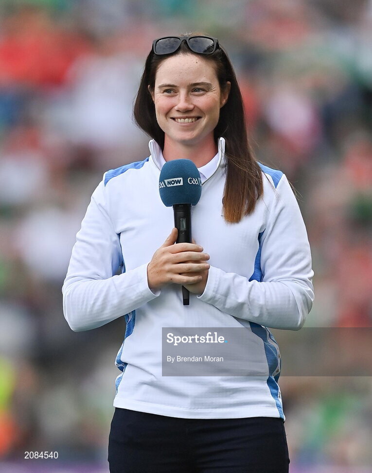 11 September 2021; Solheim Cup winner Leona Maguire is introduced to the crowd at half-time of the GAA Football All-Ireland Senior Championship Final match between Mayo and Tyrone at Croke Park in Dublin. Photo by Brendan Moran/Sportsfile