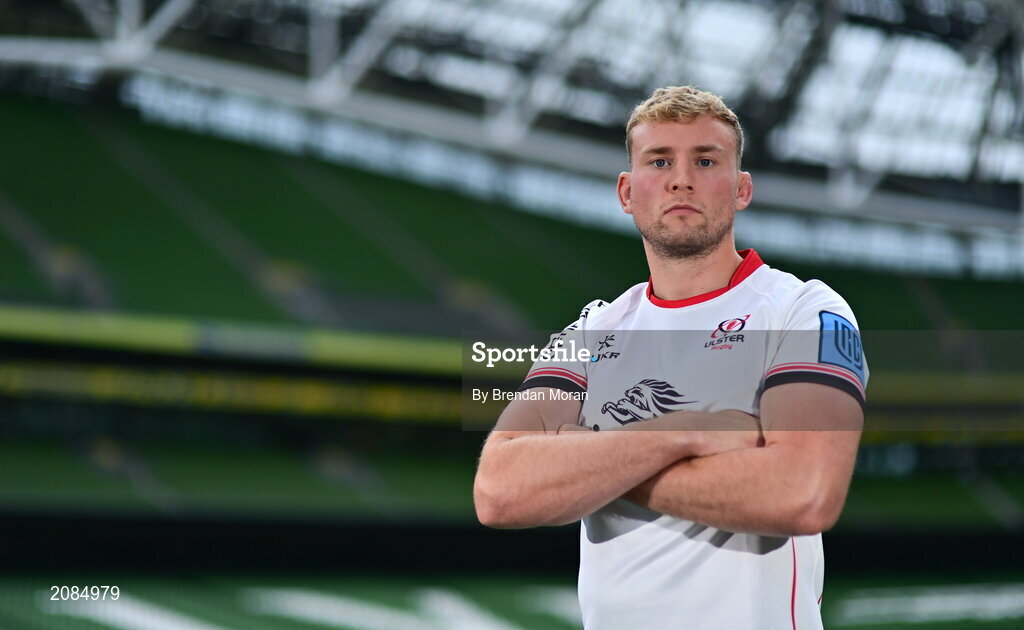 15 September 2021; Kieran Treadwell of Ulster poses for a portrait during the United Rugby Championship launch at the Aviva Stadium in Dublin. Photo by Brendan Moran/Sportsfile